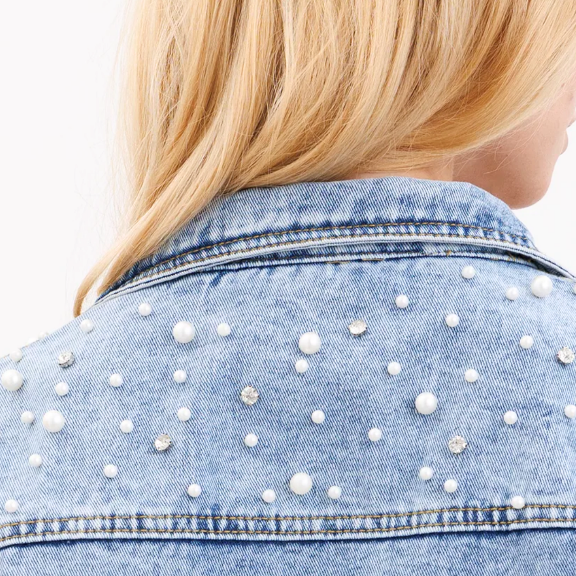 Turn heads from rehearsal dinner to the after-party. The Prince Jacket is crafted in luxe, heavy-duty denim and hand-embellished with shimmering pearls and crystals for a glam-meets-bridal vibe. Finished with expert embroidery and a flattering, relaxed fit, it’s the perfect statement layer for brides who want personality in every photo.